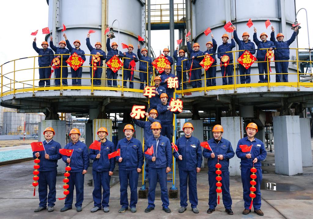 年初一,臨渙焦化公司精苯車間,利用班前會,把當天上班職工聚集在一起,歡聚一起,拍下一張喜慶祥和的“全家福”,車間黨支部書記劉升說:“這樣熱熱鬧鬧、紅紅火火,大家一起崗位過年是另外一種幸福?!?/p>